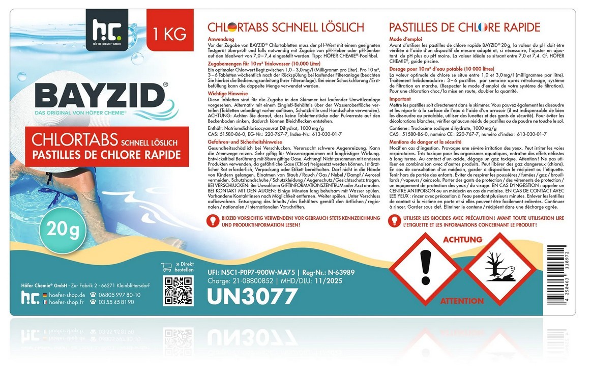 | Geeignet zur Schockchlorung: | ja |