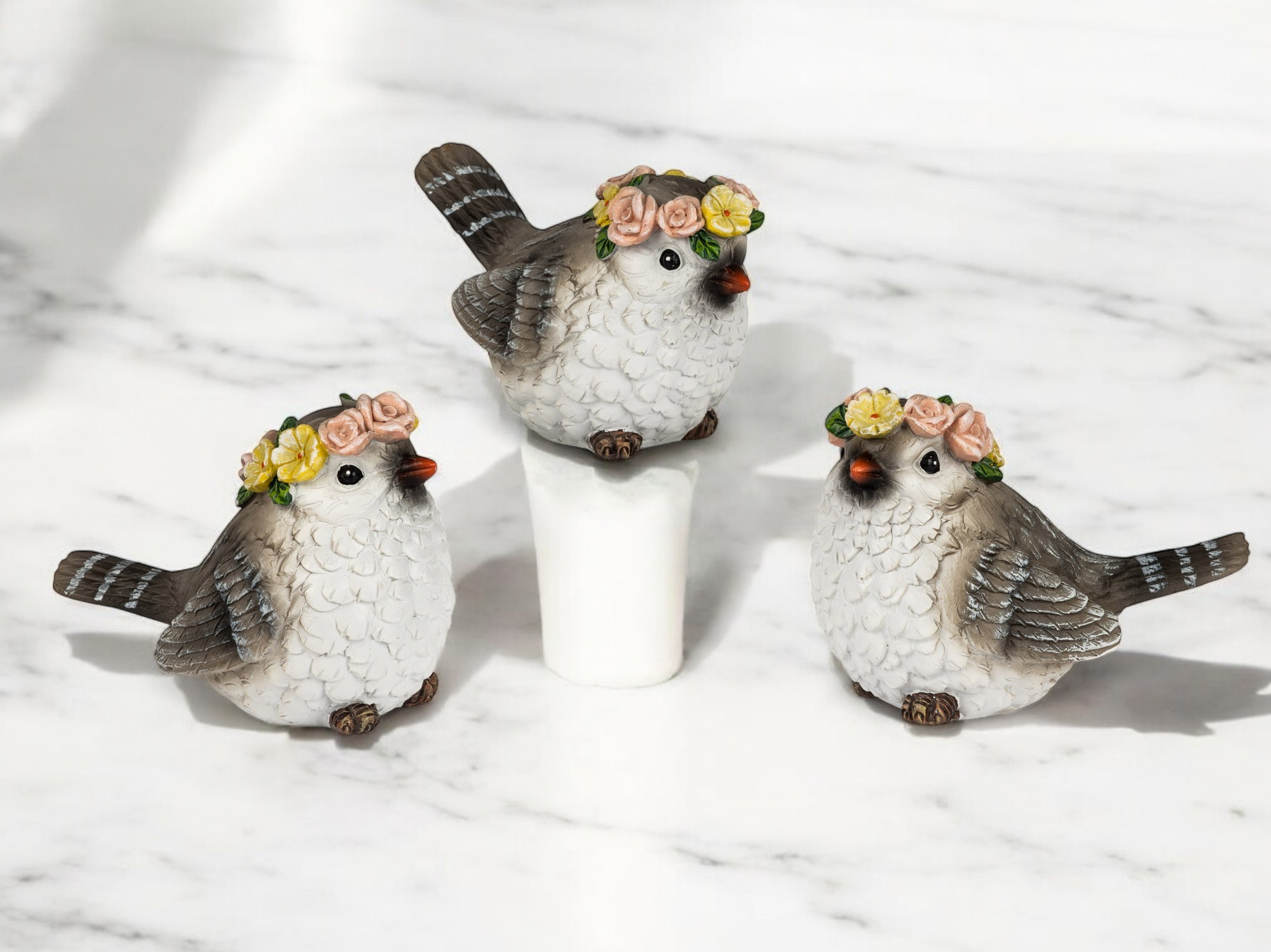 Charmantes 3er-Set: Drei liebevoll gestaltete Vogel Figuren, ideal als harmonische Frühlingsdekoration.