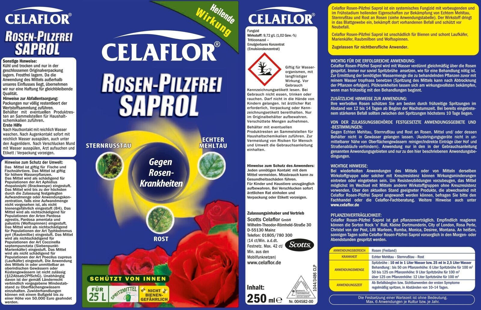- Zul.-Nr: 004582-00, Pflanzenschutzmittel vorsichtig verwenden; Vor Verwendung stets Etikett und Produktinformationen lesen; Bitte beachten Sie die Warnhinweise und Sicherheitsratschläge in der Gebrauchsanleitung; Anwendung durch nichtberufliche Anwender zulässig