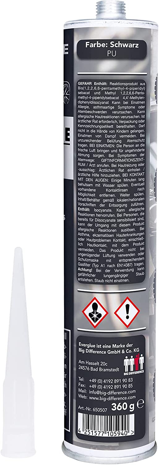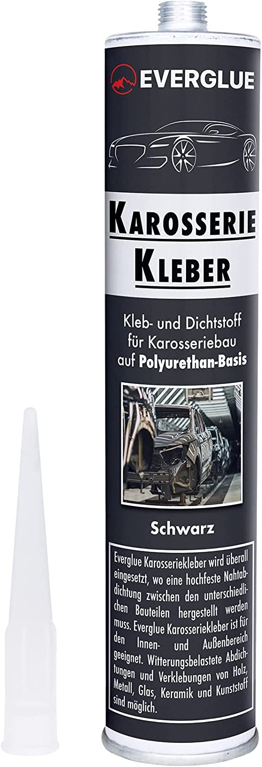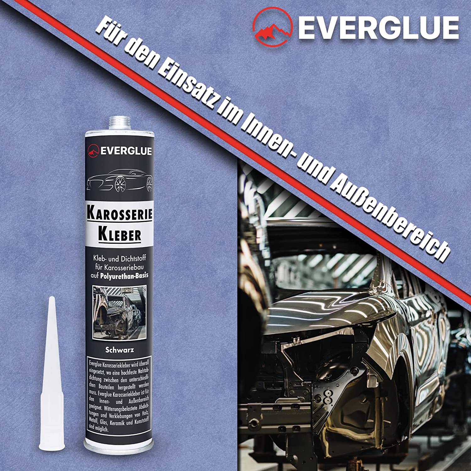 Everglue Karosseriekleber ist ein einkomponentiger silikonfreier Montagekleber auf Polyurethan-Basis (PU) für den Einsatz im Innen- und Außenbereich. Durch seine Beständigkeit gegen Wasser, Seewasser, viele verdünnte Säuren und Laugen sowie UV-Strahlung ist Everglue Karosseriekleber für die Verklebung und Abdichtung von Bauteilen geeignet, die der Witterung dauerhaft ausgesetzt sind. Durch seine Elastizität gleicht der Montagekleber dynamische Belastungen wie Stöße und Vibrationen zuverlässig aus. Everglue Karosseriekleber ist nass auf nass einsetzbar und ersetzt herkömmliche Befestigungen wie Schrauben, Nieten oder Schweißen. Der Kleber sorgt für eine elastische Abdichtung von Fugen und Nähten auch in den Bereichen, wo beispielsweise wegen anschließenden Lackierarbeiten Verschmutzungen durch Silikon vermieden werden sollen.