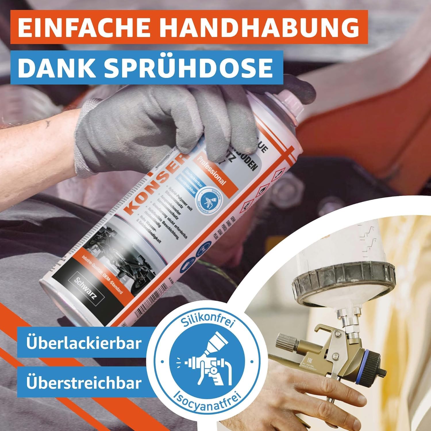 Produktbeschreibung: Everglue Konservan Professional Unterbodenschutzspray, schwarz, 500 ml Aerosol