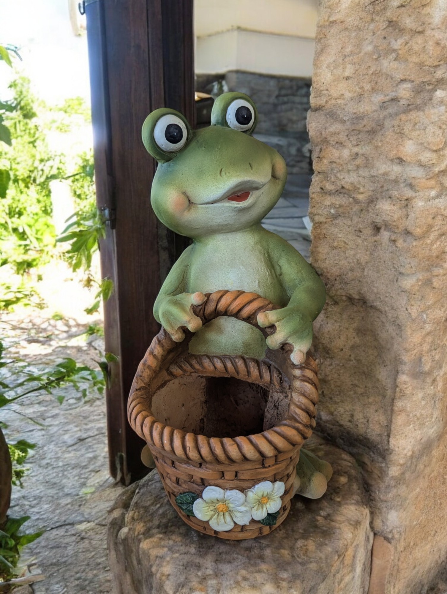 Praktische Nutzung: Der Korb in der Hand macht diesen Deko Frosch besonders vielseitig für kreative Dekorationsideen.
