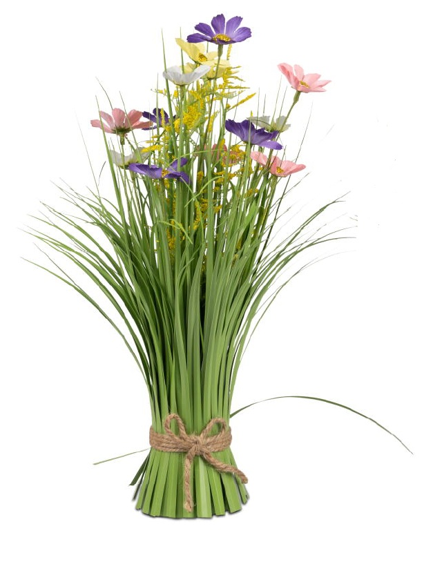 Grasbüschel stehend mit Frühlings-Blumen – 40 cm Dekoration