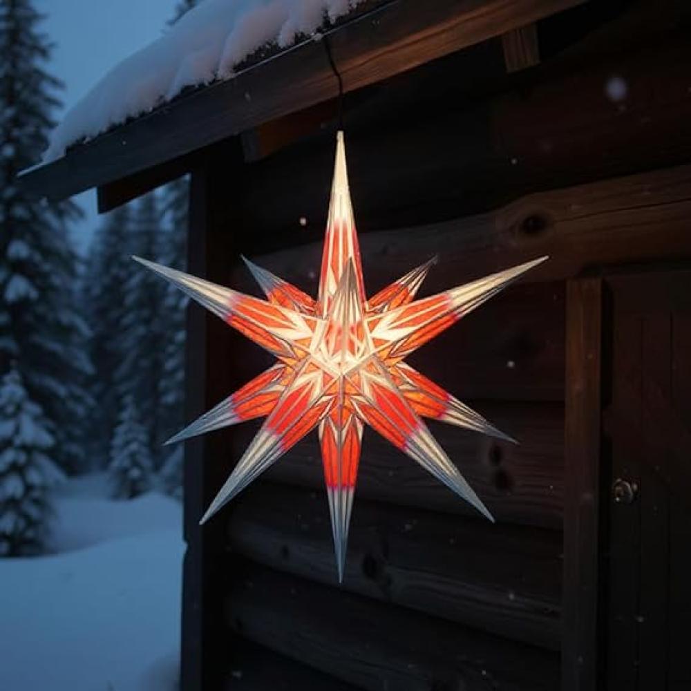 Hasslauer Weihnachtssterne Weihnachtsstern beleuchtet, 3D Leuchtstern (Rot/Weiß Silber, 75 cm (Außenstern))