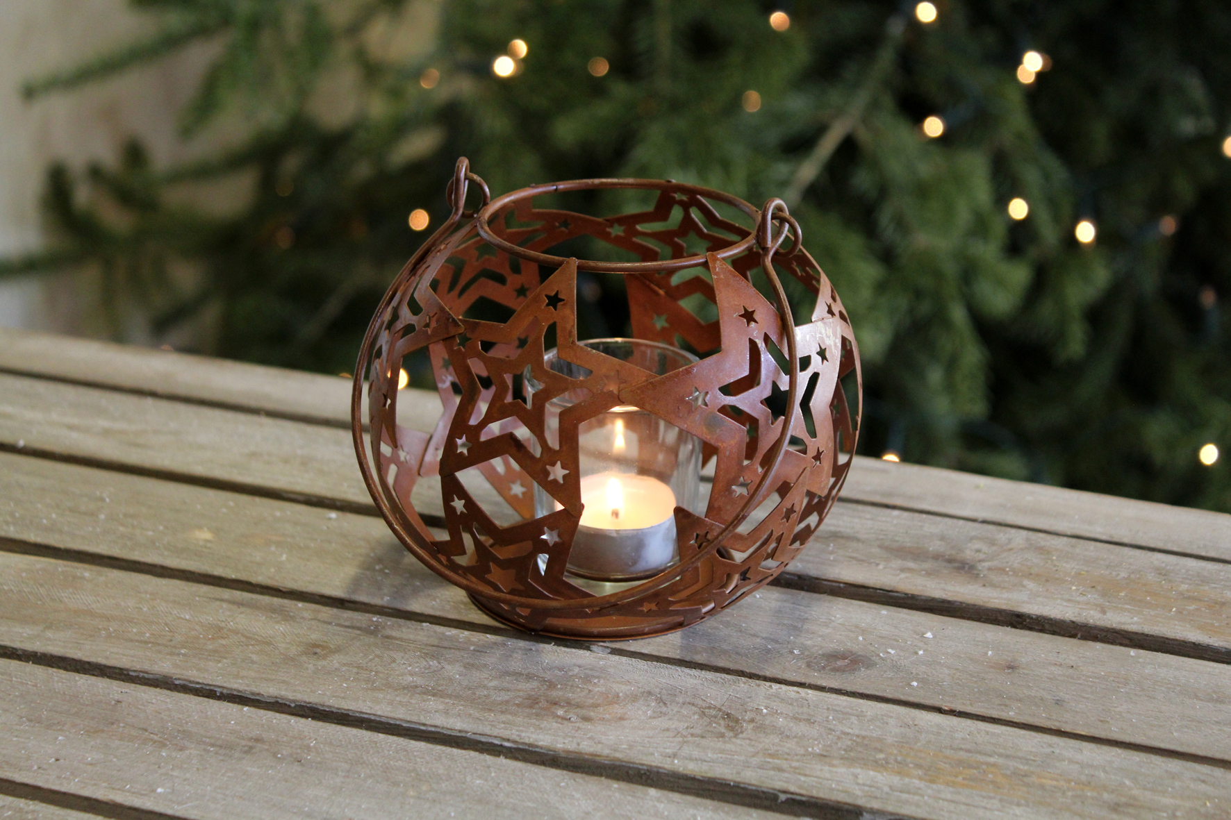 Metallkugel mit Windlichtglas, rostfarben – Außergewöhnliche Dekoration mit warmem Licht