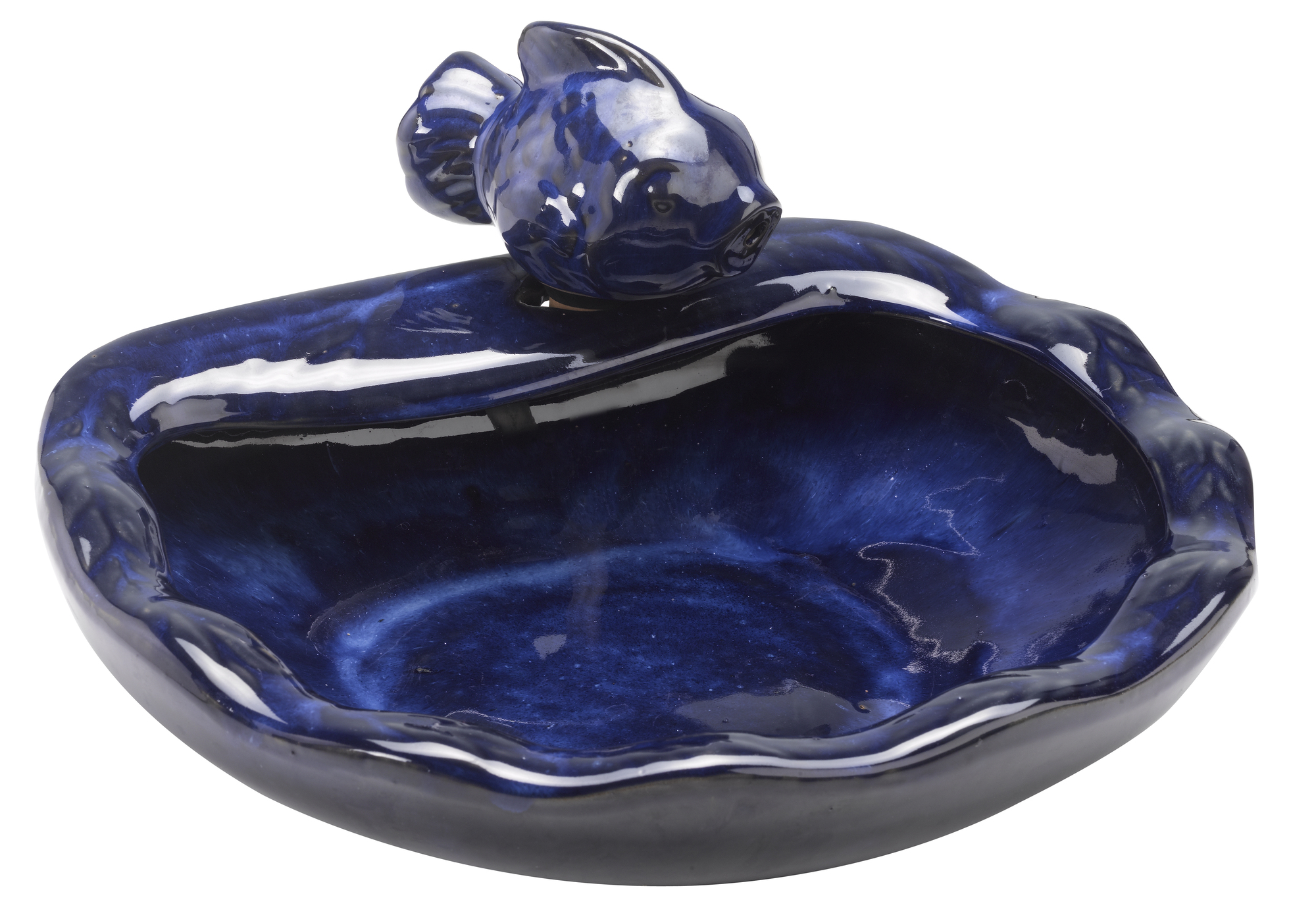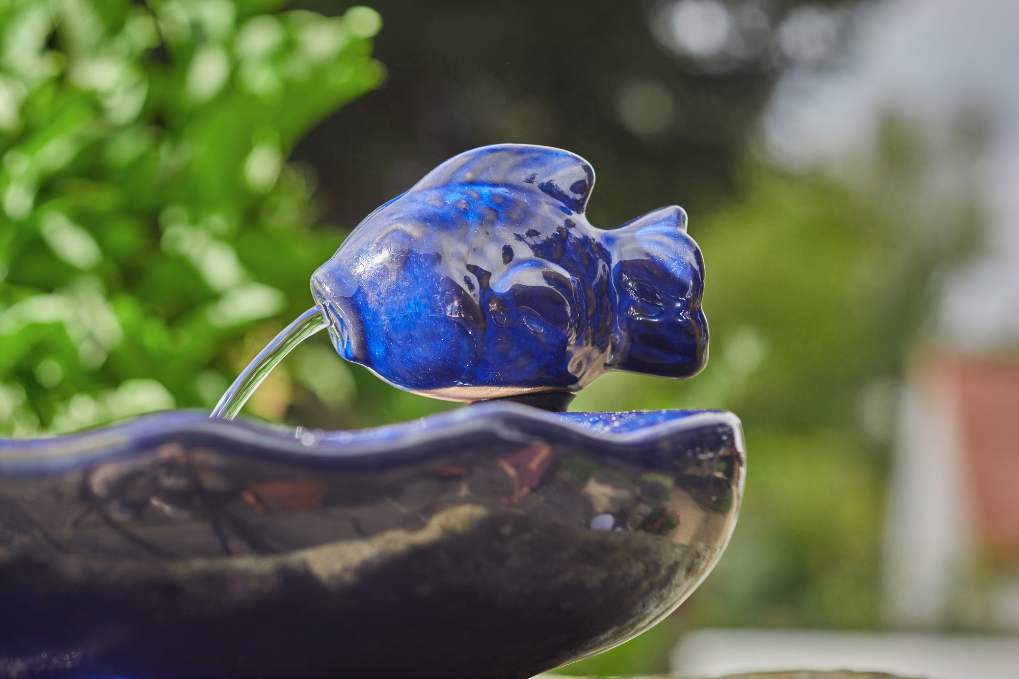 Das hochwertige Keramikmaterial mit farbenfroher Glasur macht das Wasserspiel zu einem echten Blickfang. Die verspielte Fischfigur bringt Lebendigkeit und Charme in jeden Außenbereich.