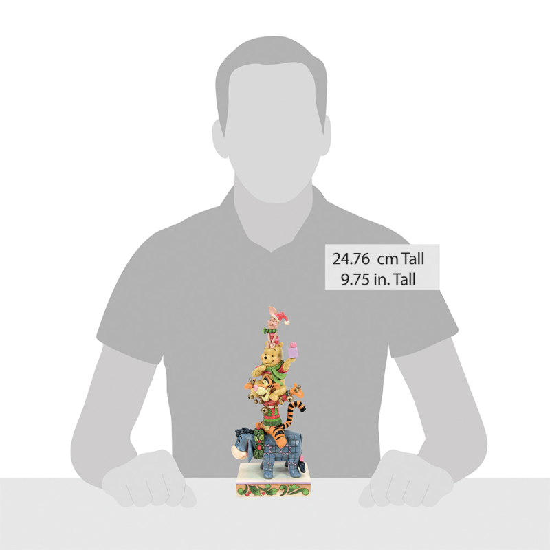 Bringen Sie festliche Magie in Ihr Zuhause mit dieser liebevoll gestalteten Disney Traditions Weihnachtsfigur von Winnie the Pooh und seinen Freunden. Die kunstvolle Figur zeigt I-Aah, Tigger, Winnie Puuh und Ferkel in einer fröhlichen Stapel-Pyramide, die mit weihnachtlichen Accessoires verziert ist. Jede Figur trägt weihnachtliche Details – von Tiggers Glöckchen über Poohs Schal bis hin zu Ferkels Geschenk – und zaubert sofort festliche Stimmung in jedes Zuhause.