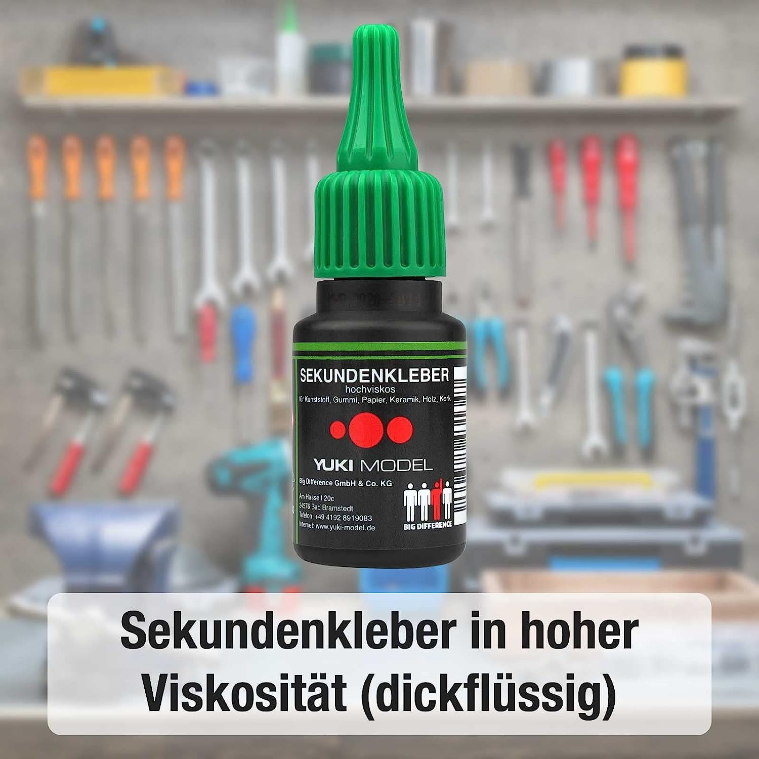 Der hochviskose Sekundenkleber verklebt nahezu alle Materialien miteinander. Der Kleber lässt sich punktgenau dosieren und hat eine schnelle Anfangshaftung. Die optimale Aushärtung wird bei Raumtemperatur mit einer relativen Luftfeuchtigkeit von ca. 65 % unter leichtem Kontaktdruck erreicht. Bei Gummi ist die Klebestelle nach etwa 15-25 Sekunden handfest, bei Aluminium nach 10-30 Sekunden. Seine Endfestigkeit erreicht der Klebstoff nach 24 Stunden. Durch die transparente Aushärtung ist die Klebestelle nahezu unsichtbar. Spalten von bis zu 0,2 mm werden gefüllt und überbrückt.